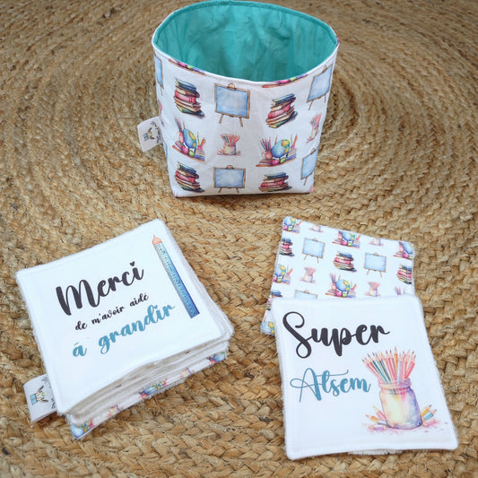 Lot de 8 cotons lavables et panier - "Super Atsem"
