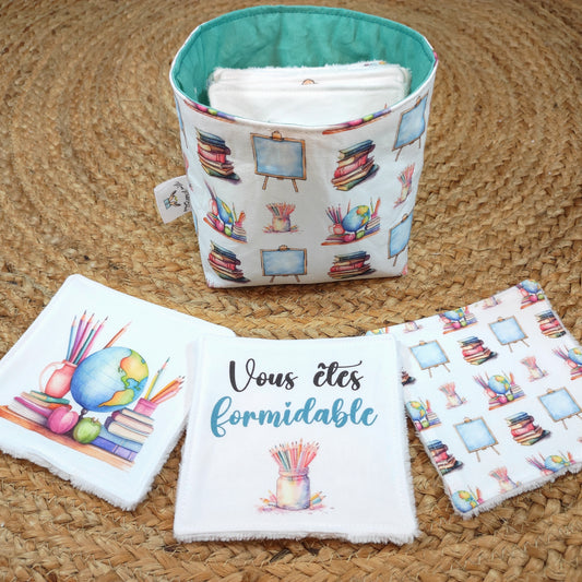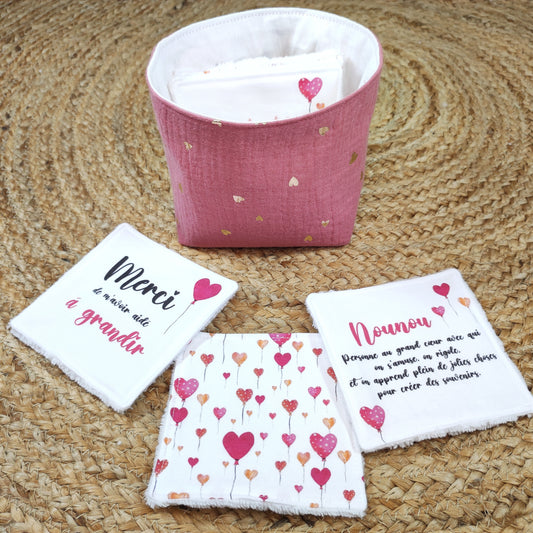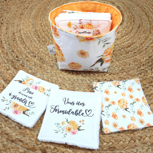 Lot de 8 cotons lavables et panier "Merci 🧡"