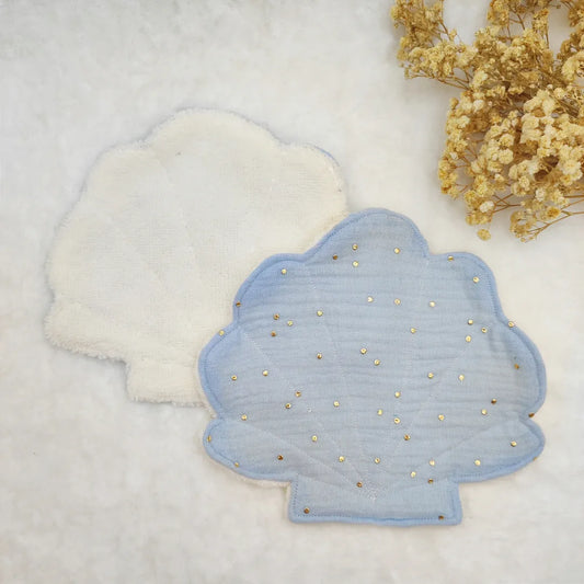 Lot de 2 Lingettes lavables coquillage BLEU PASTEL