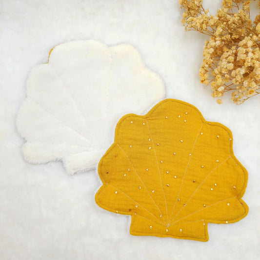 Lot de 2 Lingettes lavables coquillage MOUTARDE
