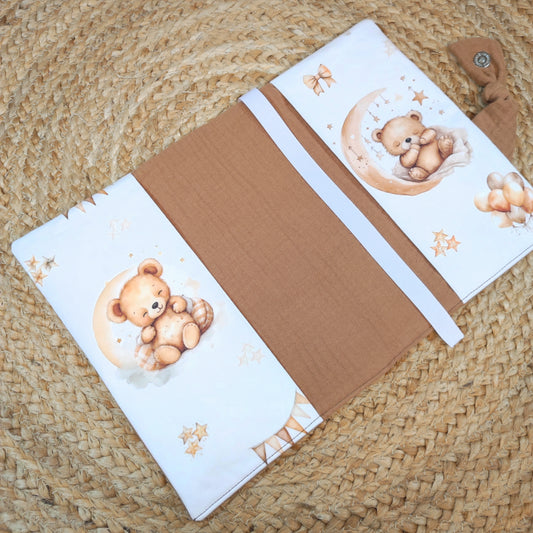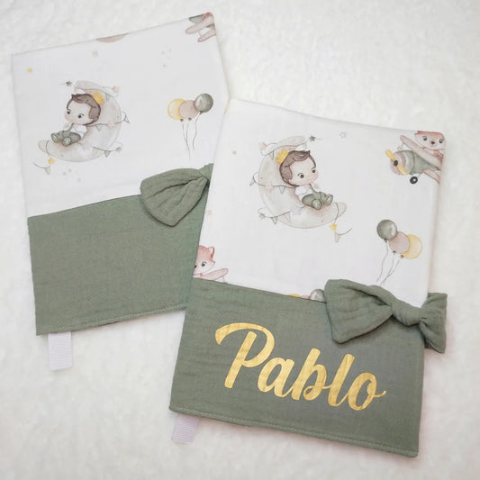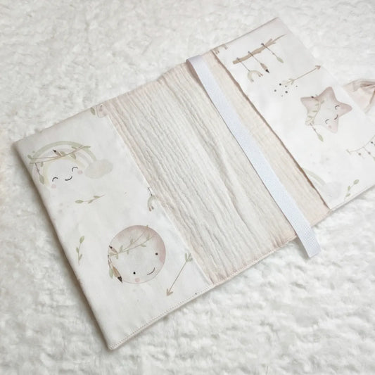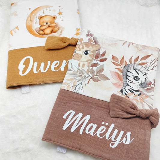 Découvrez notre collection de protèges carnet de santé personnalisables, confectionnés en satin de coton et double gaze