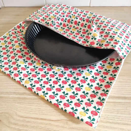 Parfait pour vos pique-niques ou lorsque vous souhaitez transporter une tarte, nos sacs à tartes sont beaux et pratiques. L'intérieur est en tissu imperméable certifié contact alimentaire.